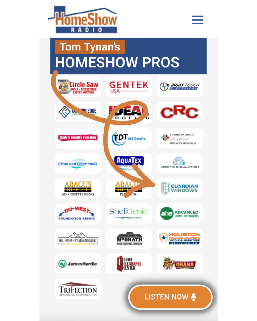 Guardian Windows has proudly met all these criteria! As a family-owned and operated business, we have been replacing windows in the Houston area for nearly 40 years, building a strong reputation for our commitment to customer satisfaction and high-quality craftsmanship. We are excited to announce our endorsement by HomeShow Radio, which speaks to our dedication and trustworthiness in the community. Tune in to Tom Tynan’s engaging show on Sports Radio 610 every Saturday and Sunday morning to learn more about us and discover why so many Houston residents choose Guardian Windows for their home improvement needs!